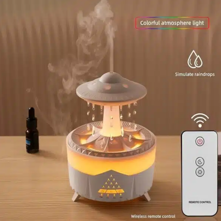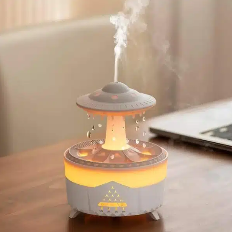 Illóolaj párologtató ultrahangos aromaterápiás párásító készülék esőcseppekkel gomba design