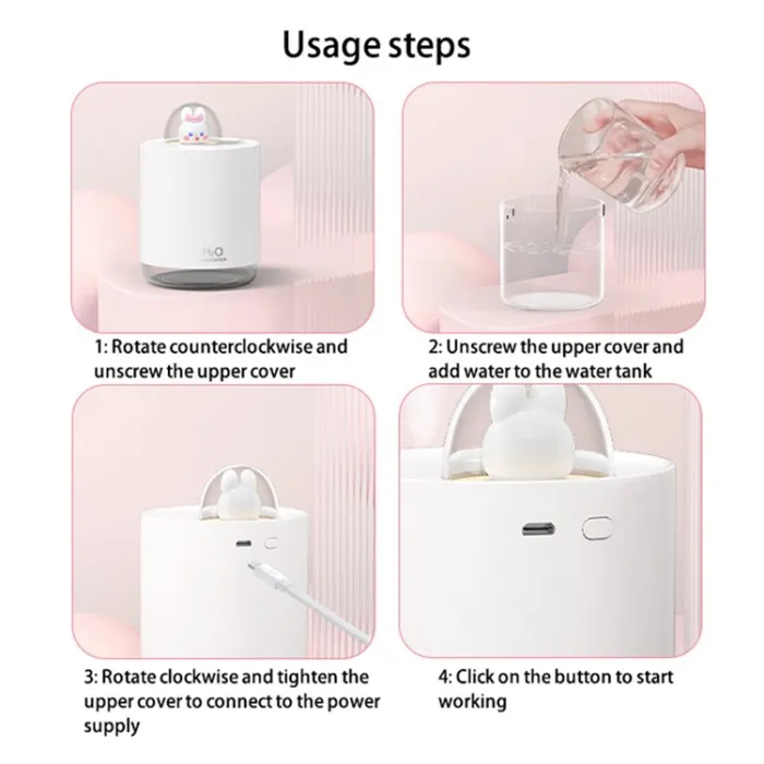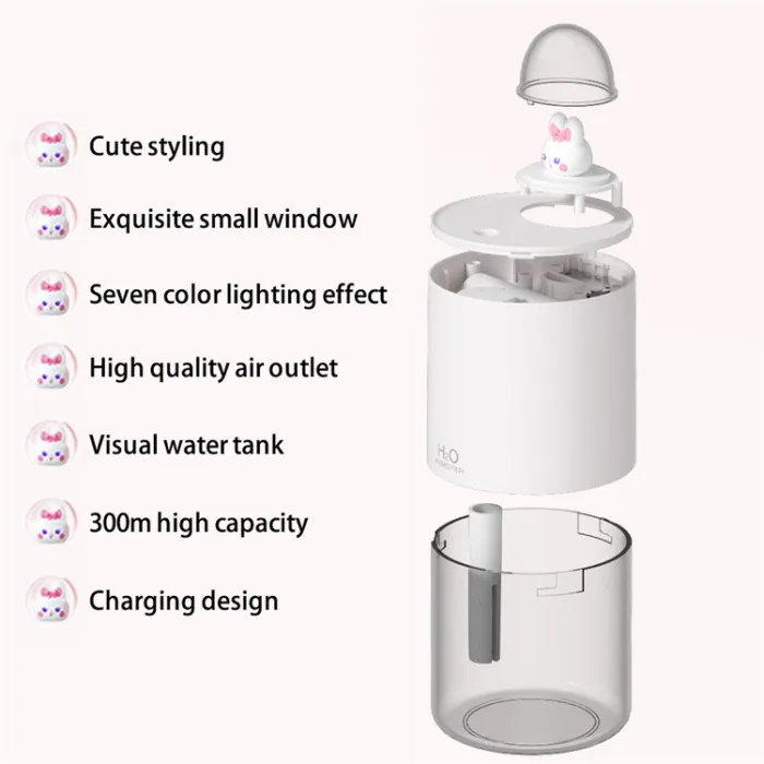 H20 USB dugaszolható köd párásító LED éjszakai fény 300 ml víztartály, csendes működés