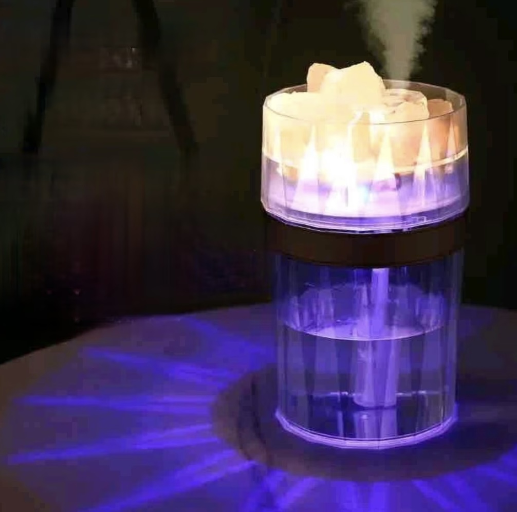 Ennek a gyönyörű megjelenésű párásítónak a tetejébe kristály só van melyet hangulatos színváltó led világít meg.