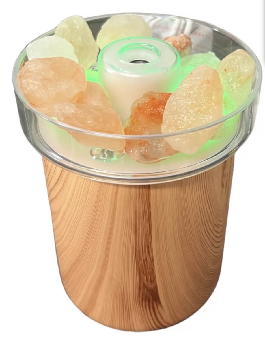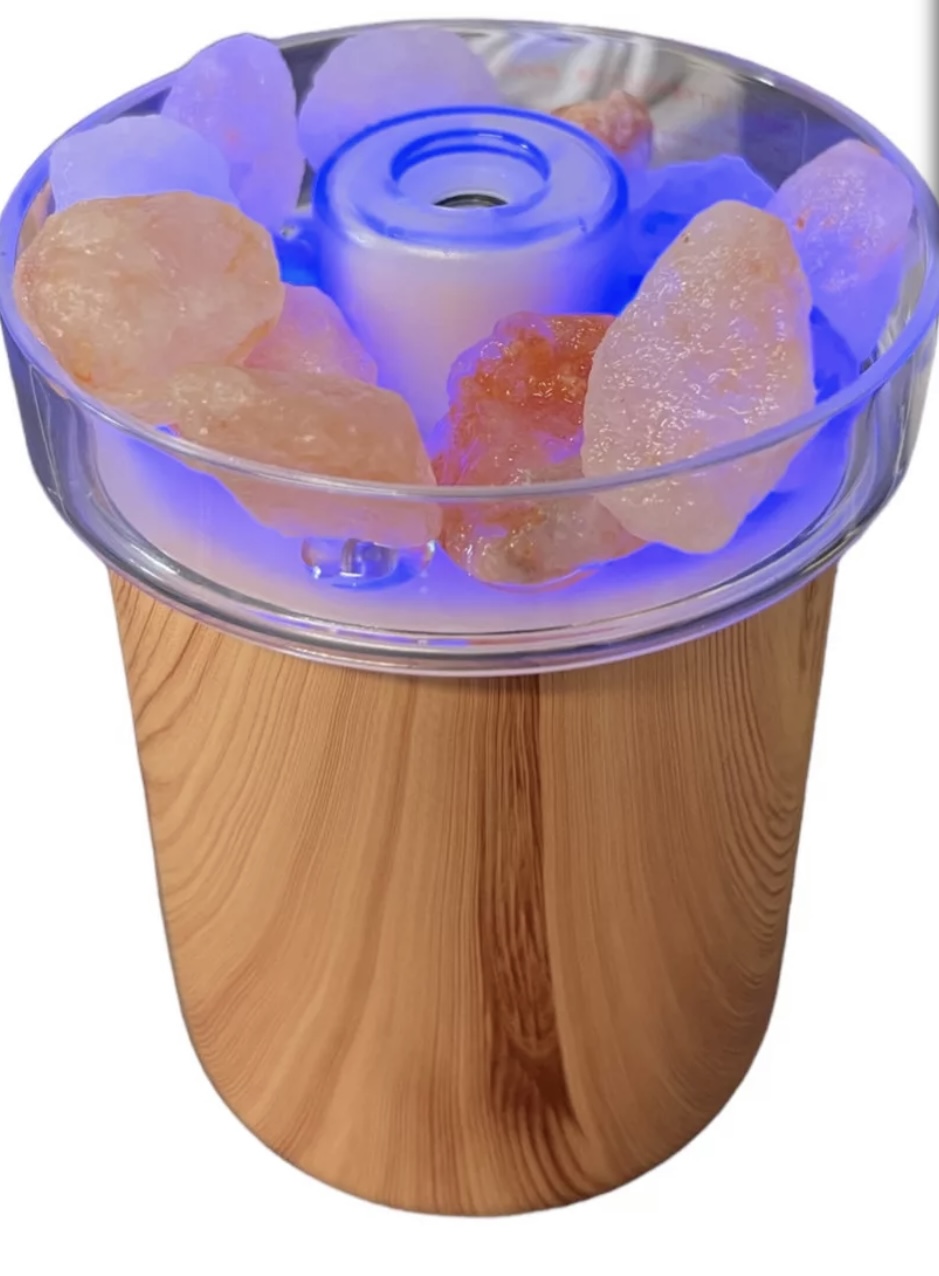 Ennek a gyönyörű megjelenésű párásítónak a tetejébe kristály só van melyet hangulatos színváltó led világít meg.