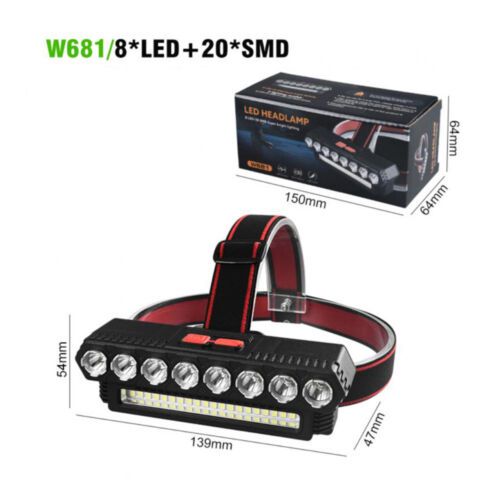Erőteljes Fejlámpa 8 Led + 20 SMD Akkumulátorral USB – W681