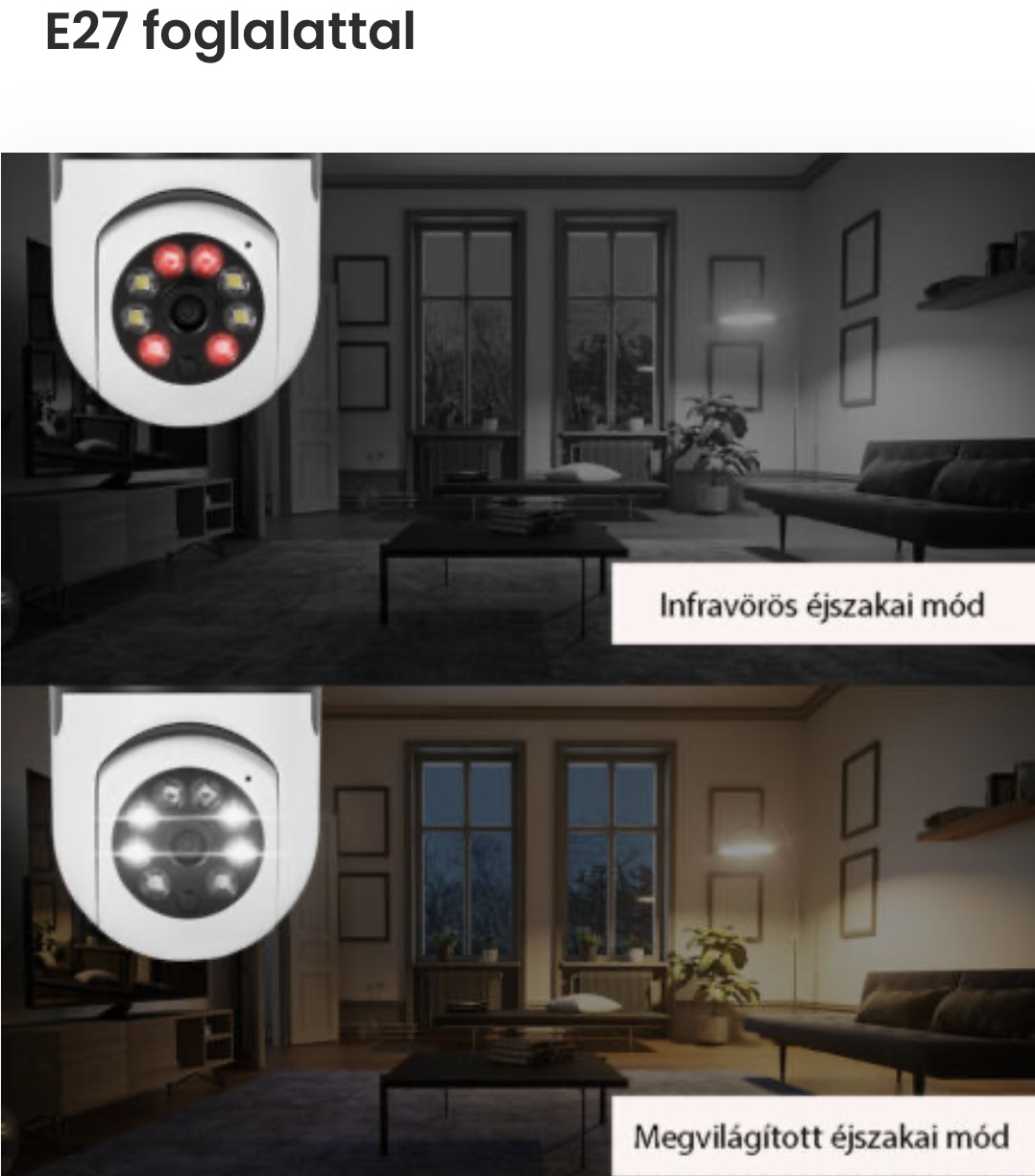 -1 x WiFi IP kamera + E27-es foglalat.