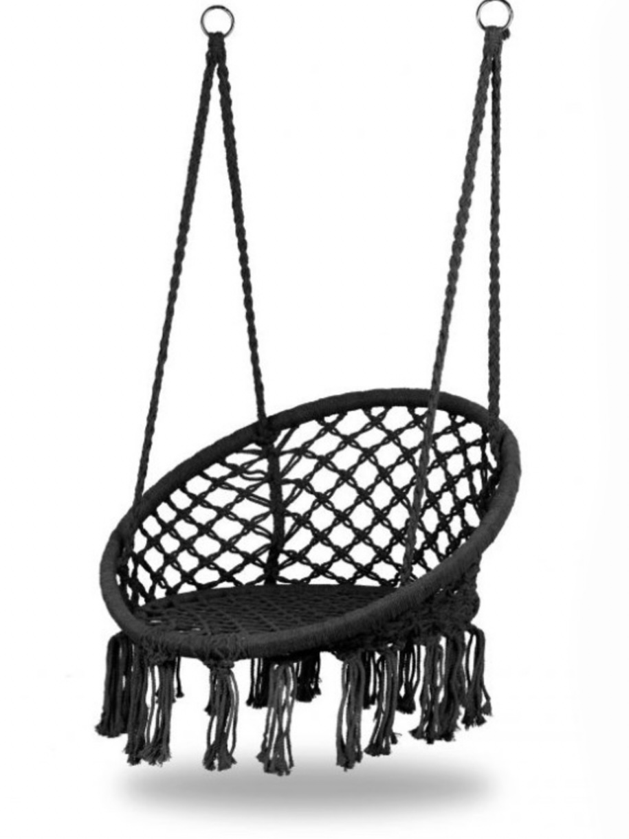 Tartós anyagból és dekoratív rojtokból készült, pamut és poliészter keverékéből. Az extra kényelem érdekében a függőágy háttámlájára néhány díszpárnát és egy bolyhos takarót helyezhet.