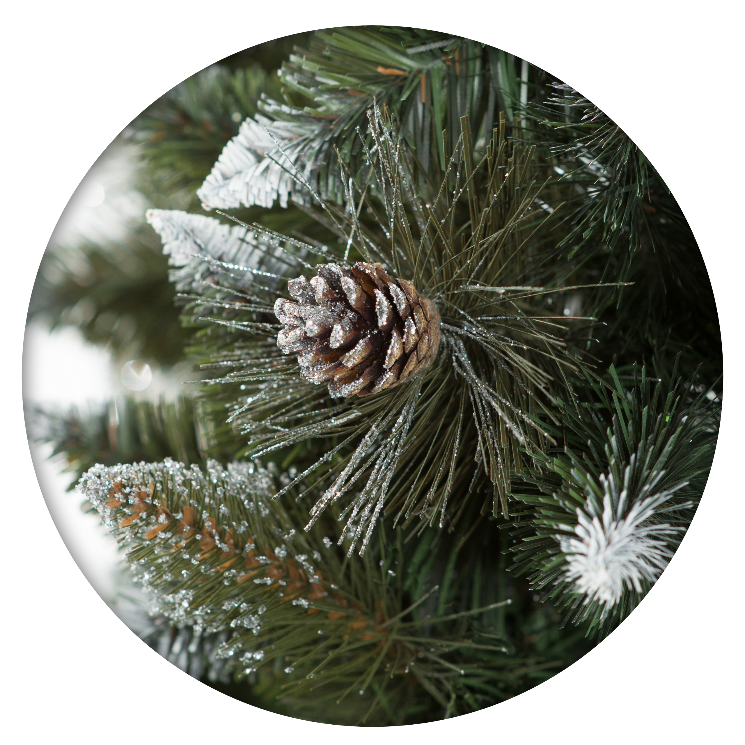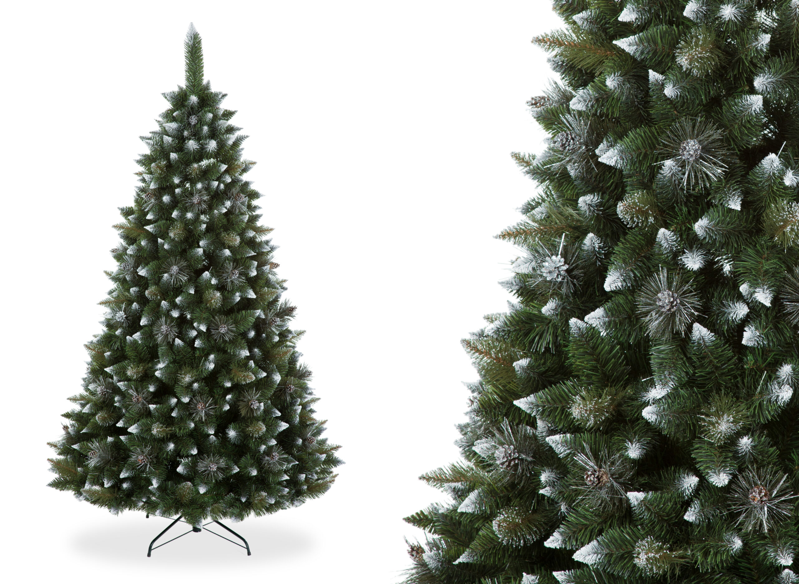 A karácsonyfa természetes megjelenése érdekében természetes fenyőtobozokat adtunk a fához, amelyek tartósan rögzítve vannak.
