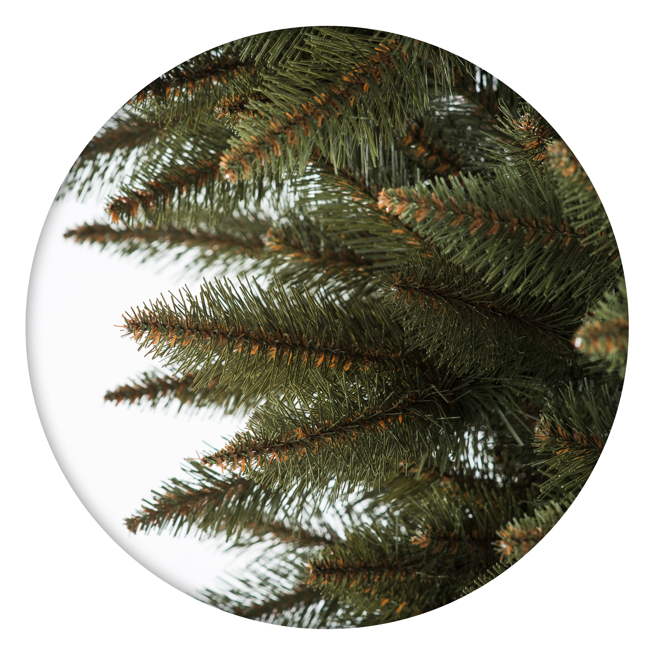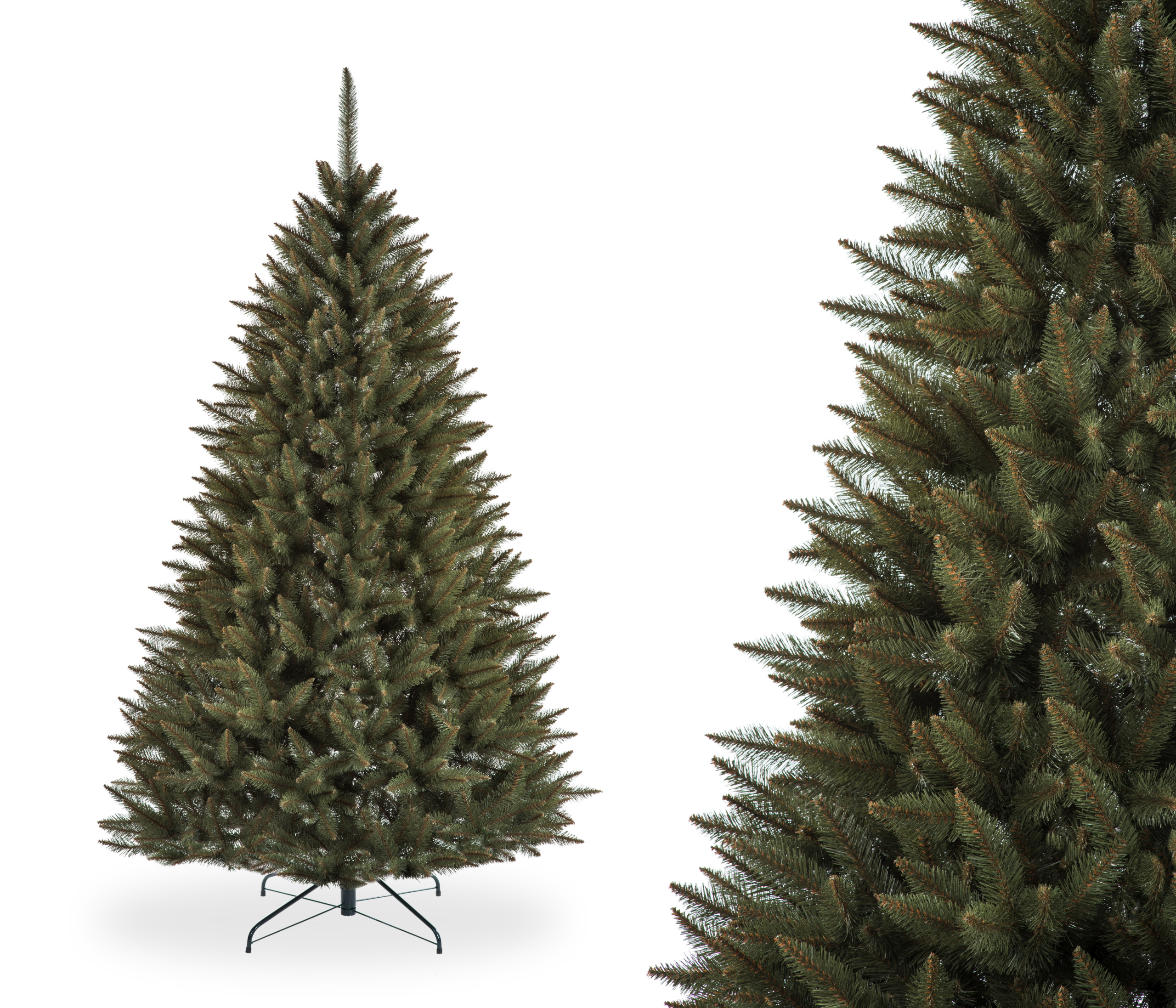 A mesterséges skandináv lucfenyő ágai vékony, meglehetősen merev tűlevelekből állnak, körülbelül 2 cm hosszúak. Közepüket is barna fólia tölti ki, ami a szár természetes megjelenését imitálja. A kúp alakú ágak tűi szorosan egymás mellett helyezkednek el. Ezzel az eljárással vastag, bolyhos karácsonyfát kaptunk. Ezenkívül minden ág tartósan acélhuzalhoz van rögzítve, amely könnyen kihajtható, és lehetővé teszi, hogy a karácsonyfát saját elképzelései szerint alakítsa. Akár nehéz karácsonyi díszeket is akaszthatunk rá.