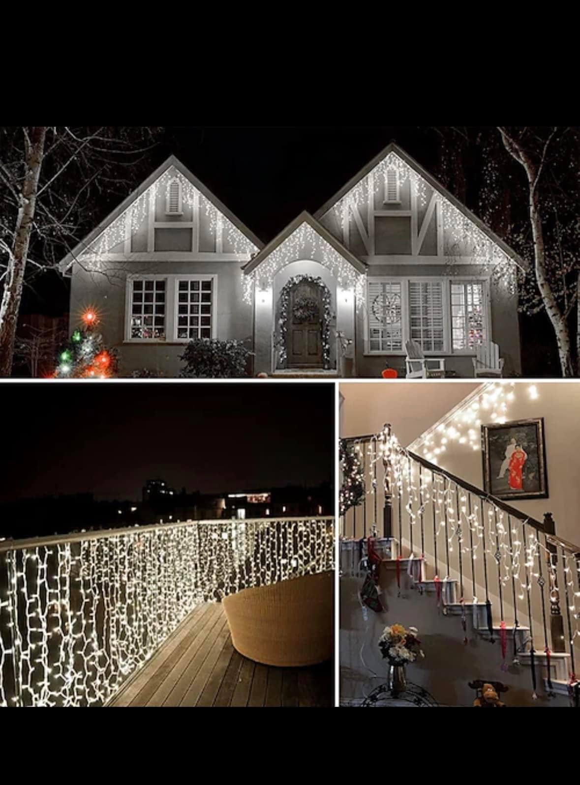A jégcsap füzérek különlegessége, hogy egy központi vezérszálról különböző hosszúságú mellékszálak lógnak le, amiken a LED-ek találhatók, pont úgy, ahogy az igazi jégcsapok. Épülethomlokzatra, korlátra, eresz alá felhelyezve gyönyörű hatást kelt ez az enyhe szabálytalansága. Hideg fehér, meleg fehér és színes LED-es kivitelben kapható fehér kábellel.
