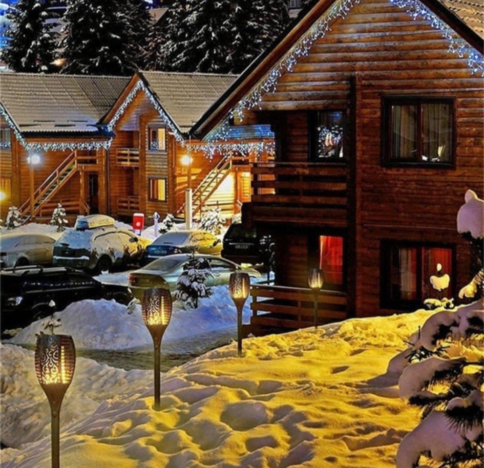 A világítást a napelemes beépített 33 LED biztosítja, amelyek beépített akkumulátorral működnek. Különleges hatást biztosít a láng effekt, amelyet a valódi fáklyák fényéből modelleztek.