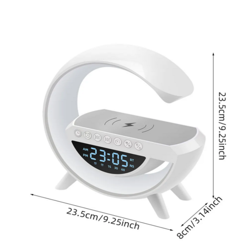 Ez a multifunkciós lámpa biztosan tetszeni fog mindenkinek, aki szereti a zenét, szüksége van ébresztőórára, lámpára és nem utolsósorban vezeték nélküli töltéssel rendelkező telefonnal rendelkezik. Modern, G-alakú kialakításának és a felhasznált anyagoknak köszönhetően nemcsak szobákba és hálószobákba alkalmas, hanem biztosan örömet szerez az iskolásoknak és diákoknak is, mint funkcionális és dekoratív eszköz a szobájukban. A lámpa dizájnját hangsúlyozzák a krómszínű, gumisapkával ellátott lábak, amelyek megvédik a bútorokat a karcolásoktól.