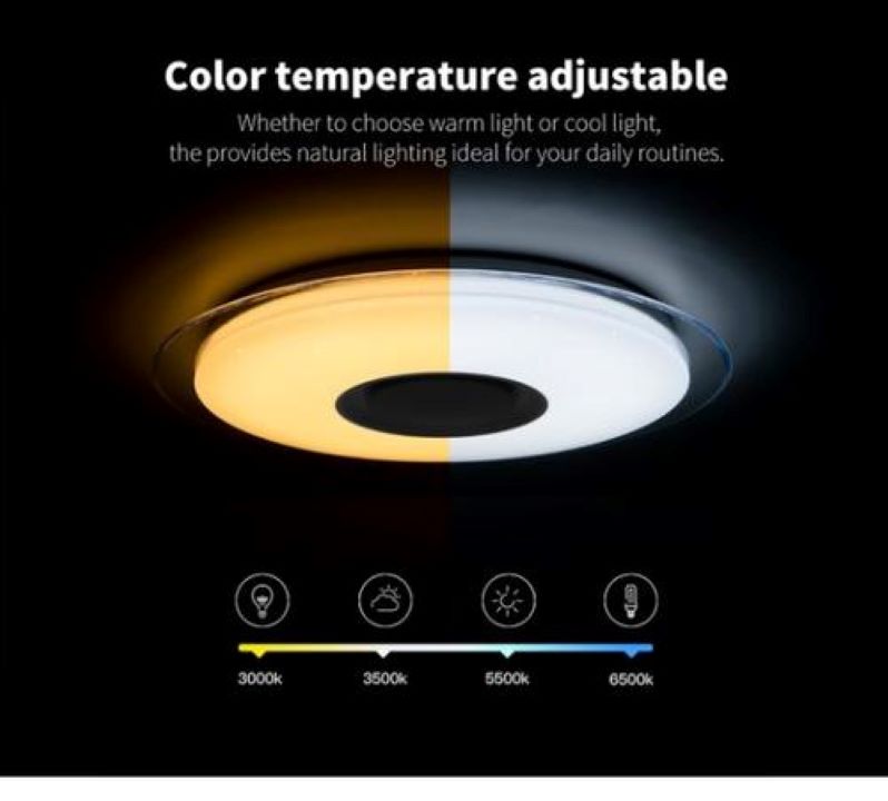 Távirányítós, hangszóróval felszerelt fali-mennyezeti LED-es lámpa, amely olyan színhőmérsékletben világít amilyet megálmodsz magadnak! (hidegfehér, melegfehér, és keverékei) Állítsd be a színhőmérsékletet hogy passzoljon a hangulathoz, és közben telefonodról rakj be egy kellemes zenét. Varázsolj randi vagy akár buli hangulatot a szobába! De ha egy kis relaxáció lenne a célod akkor minden feltételt megteremt hozzá!