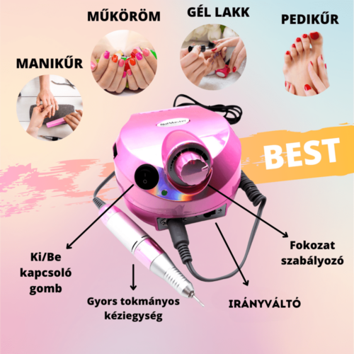 Egy igazán profi csiszológépet keresel, hogy körmeidet gyorsan és egyszerűen elkészíthesd? Nem kell kézi reszeléssel töltened az időt! A csiszológéppel percek alatt eltávolíthatod a fedőlakkot és a színt. A csiszolót kényelmes fogni, ha nem használod, az asztali tartójába állíthatod, így nem kell attól félned, hogy legurul az asztalról. A csiszolás erőssége manuálisan állítható, több fokozatban, fordulatszám szerint. 6 féle csiszolófej közül választhatsz, attól függően, hogy milyen felületet, vagy formát szeretnél elérni. A csiszológéphez tartozik egy lábpedál, így könnyebben tudod irányítani a munkafolyamatot, csak kapcsolj át a „HAND” funkcióból a „FOOT”-ra.