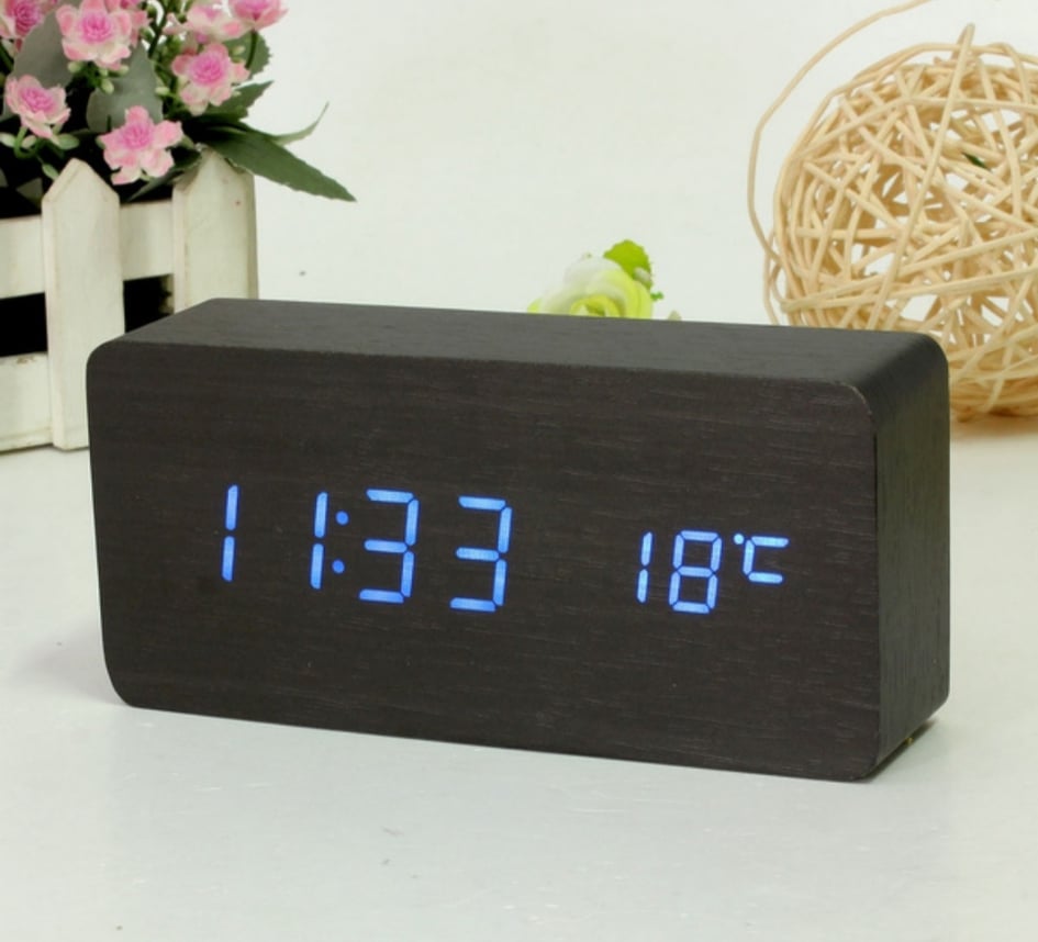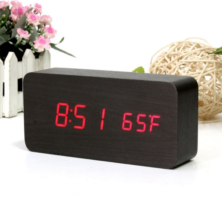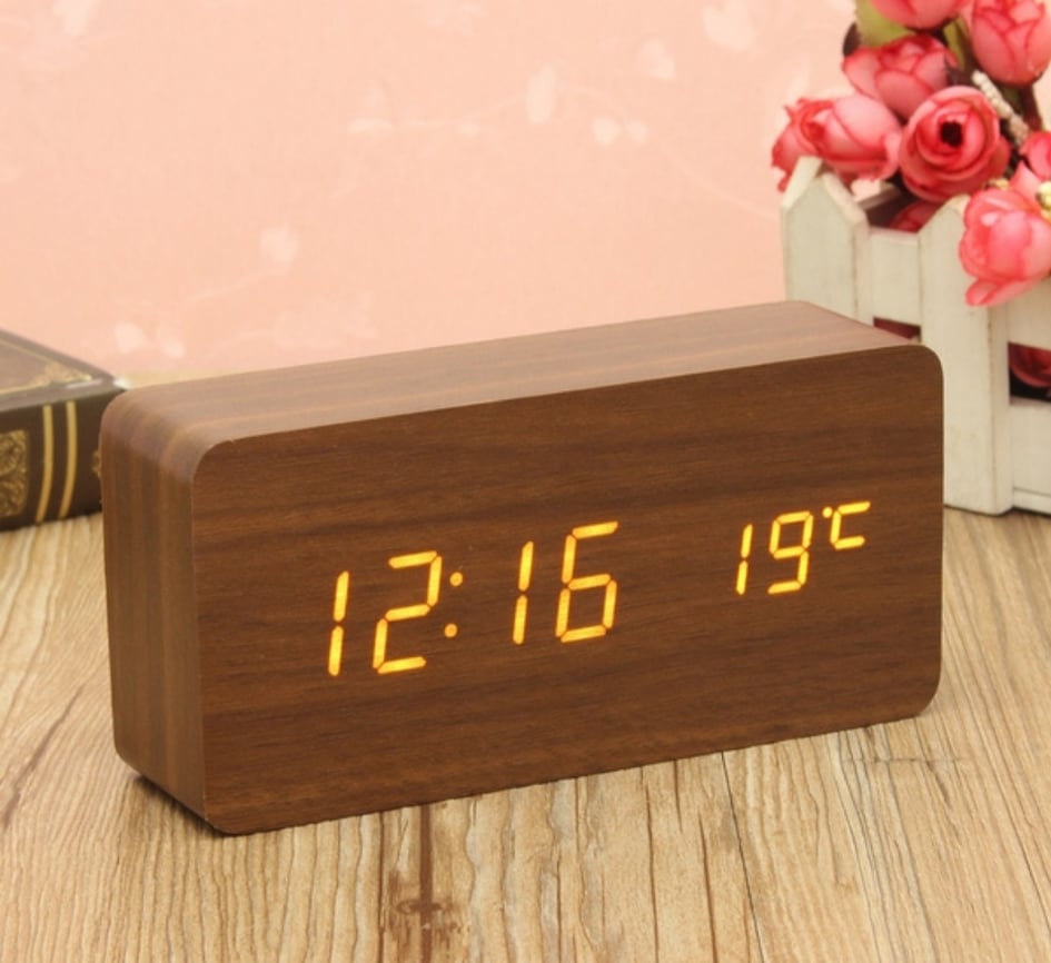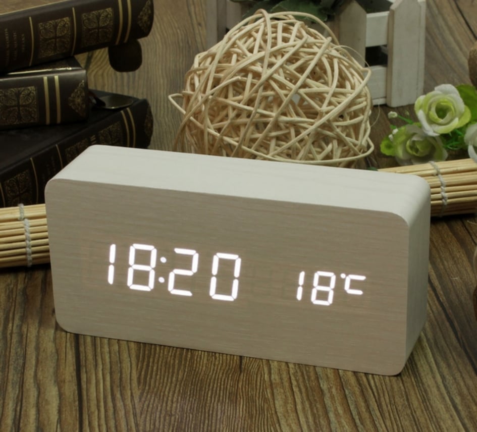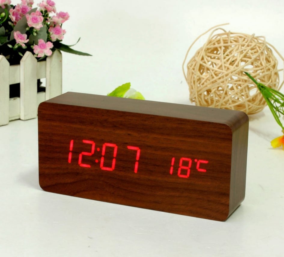 Ez a LED kijelzővel és designos faburkolattal ellátott óra stílusos kiegészítője lesz a lakásodnak.