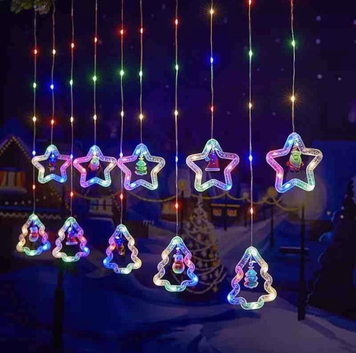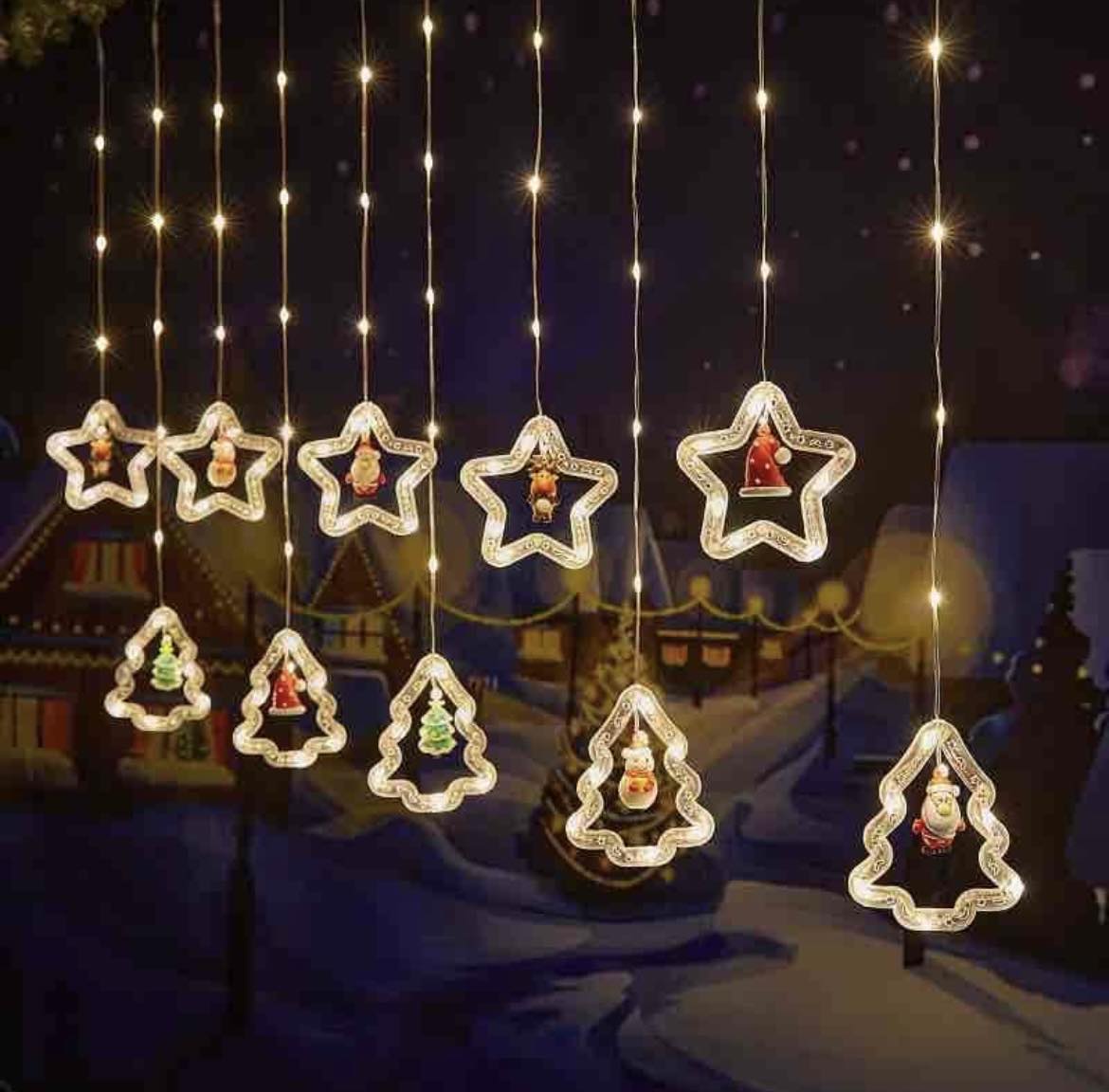A fényfüzér 3 méter hosszú és 8 programlehetőséget tartalmaz. A figurák lógási hossza váltakozó, 50-70 cm.